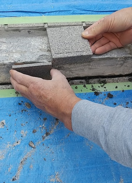 2026年3月25日 / 最終更新日 : 2026年1月9日 柴田 タイル <タイルの補修> <タイルの補修>玄関アプローチのタイルは割れて雨水が入り浮いてしまうことがよくあります。対処法としてはタイルの種類にもよりいますが上り口の先端をL型の役物タイルで仕上げることです。浮き剥がれが減り、見栄えもグレードアップします。 アプローチ先端一列と立上り一列のタイル張替え 先端の一列はL型の役物タイルを使用 タイルの1枚1枚の高さと位置決め 目地モルタルを入れて完成