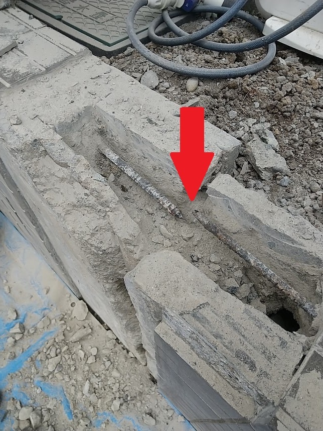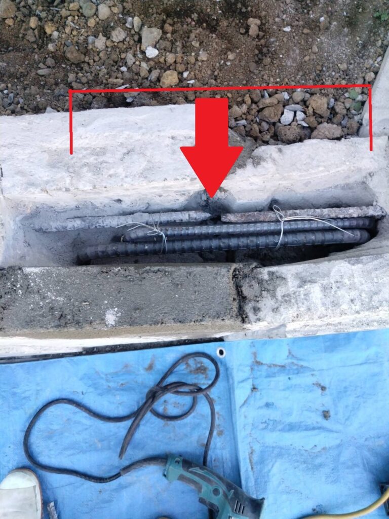 2本の新しい鉄筋はこの字に地面に向かって長く挿入